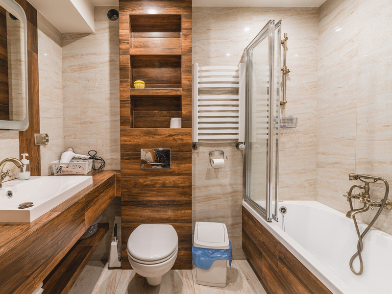 Dom posiada 3 łazienki, które są wykończone w wysokim standardzie. W łazienkach znajdują się prysznice, a w jednej z nich jest wanna. Jeden pokój posiada prywatną łazienkę, natomiast dwie pozostałe łazienki są do ogólnej dyspozycji w domu.